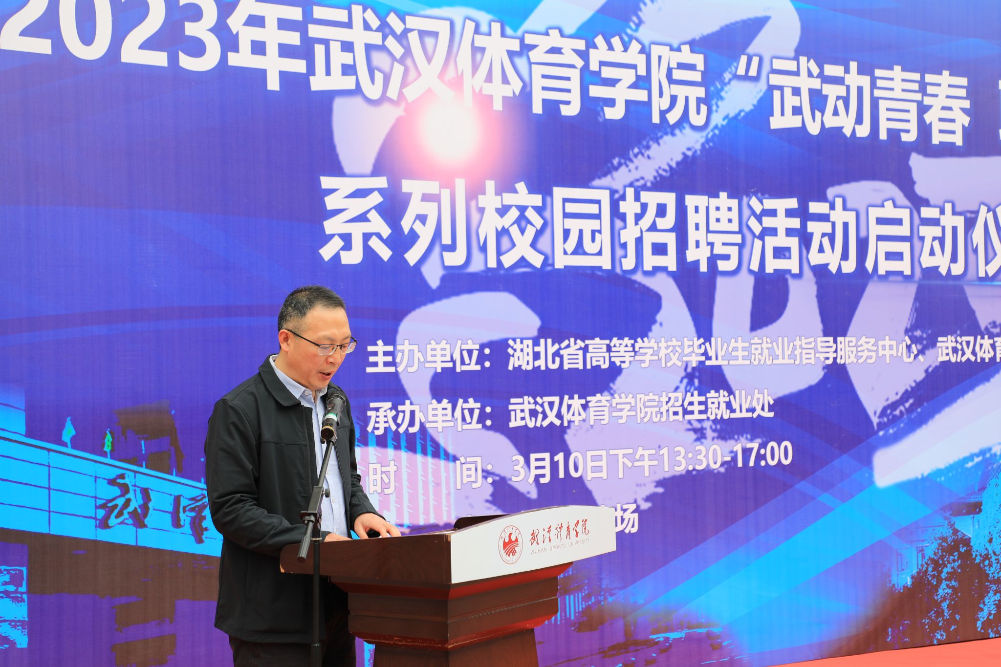 新闻网讯(通讯员高晗)3月10日下午,由湖北省高等学校毕业生就业指导服务中心、武汉体育学院主办,武汉体育学院招生就业处承办的“武动青春 职等你来”2023年武汉体育学院校园系列招聘活动启动式在奥星苑广场举行。党委常委、副院长王志强主持启动式。