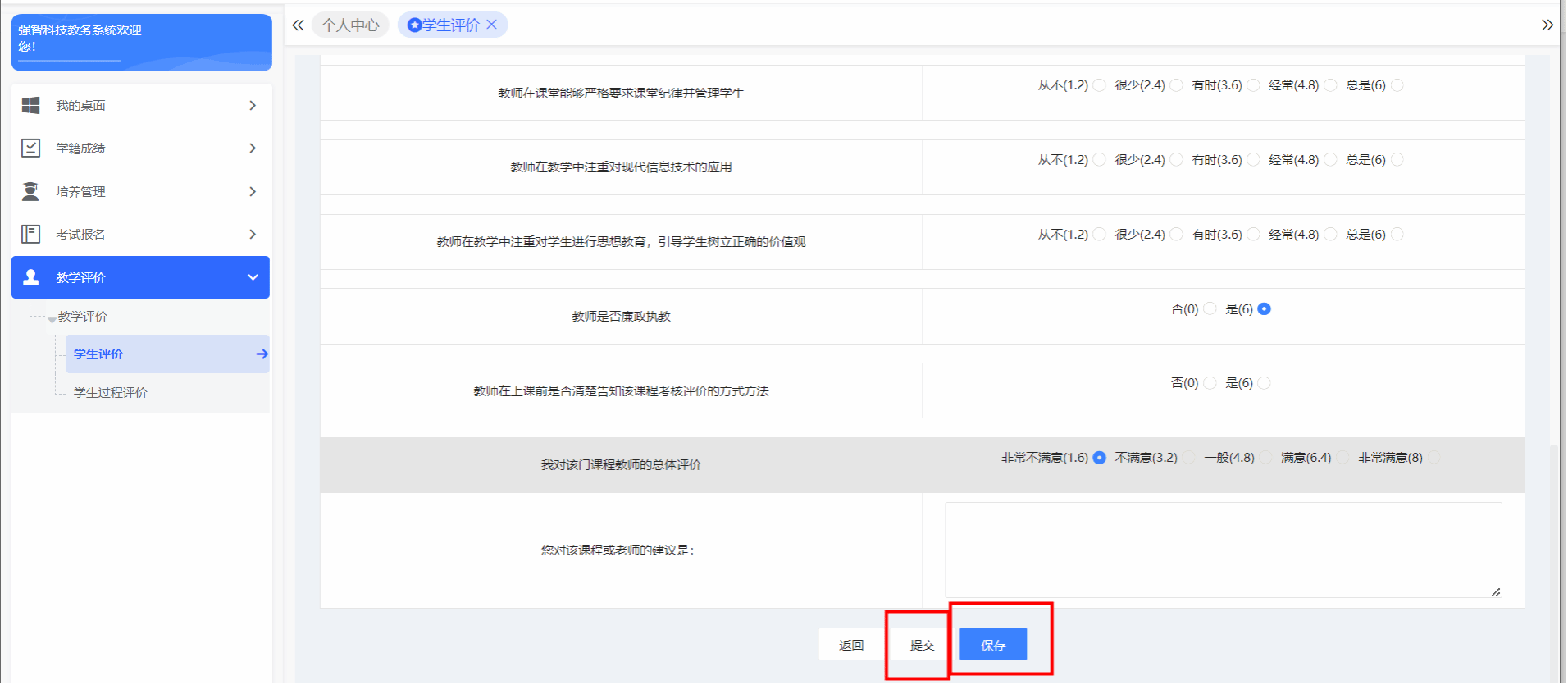 5.独立完成评教过程,不得相互影响、代他人评教;