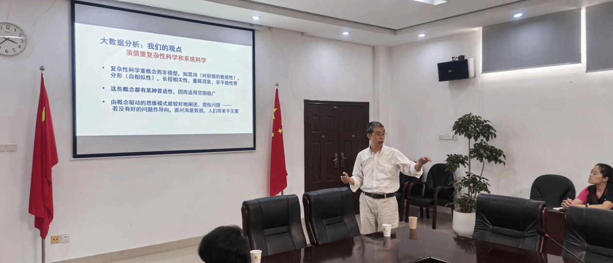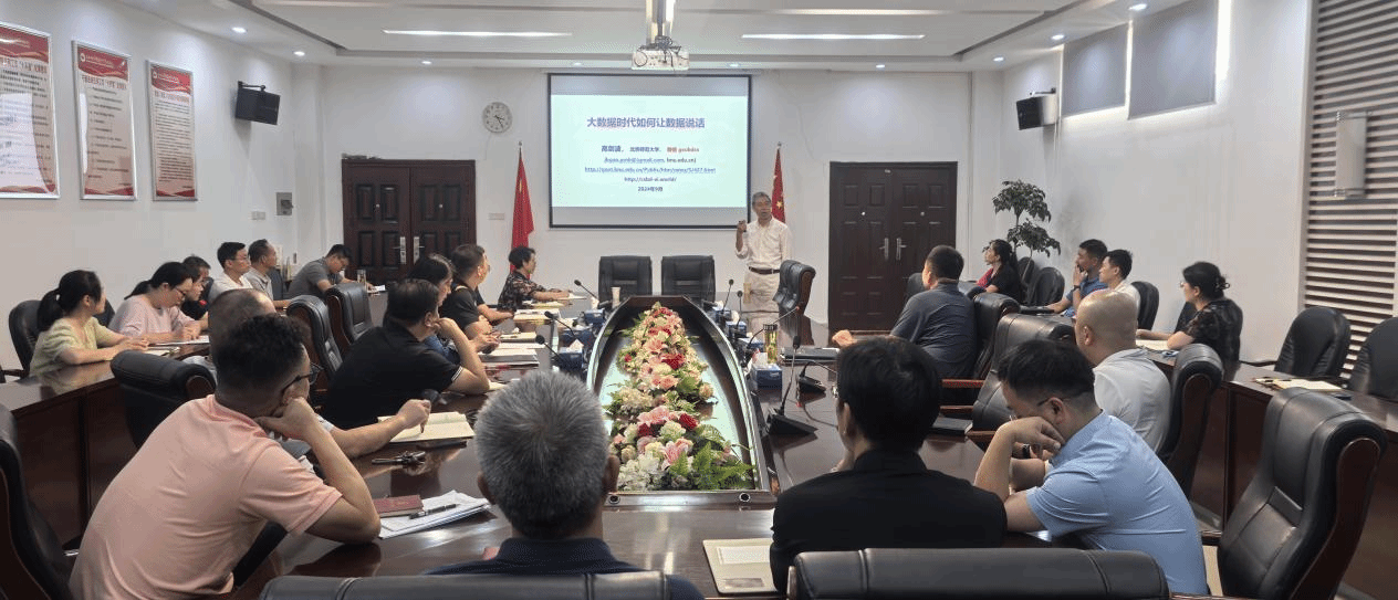 (通讯员 余慧芬)9月19日下午,非线性科学研究领域专家、北京师范大学教授、博士生导师高剑波应邀莅临我校,在行政楼二楼会议室为学院领导干部、教研室主任书记作了一场题为"大数据时代如何让数据说话"的讲座。讲座由常务副院长高治主持,全体中层干部、教研室主任、书记及教务处等相关人员参加了本次讲座。