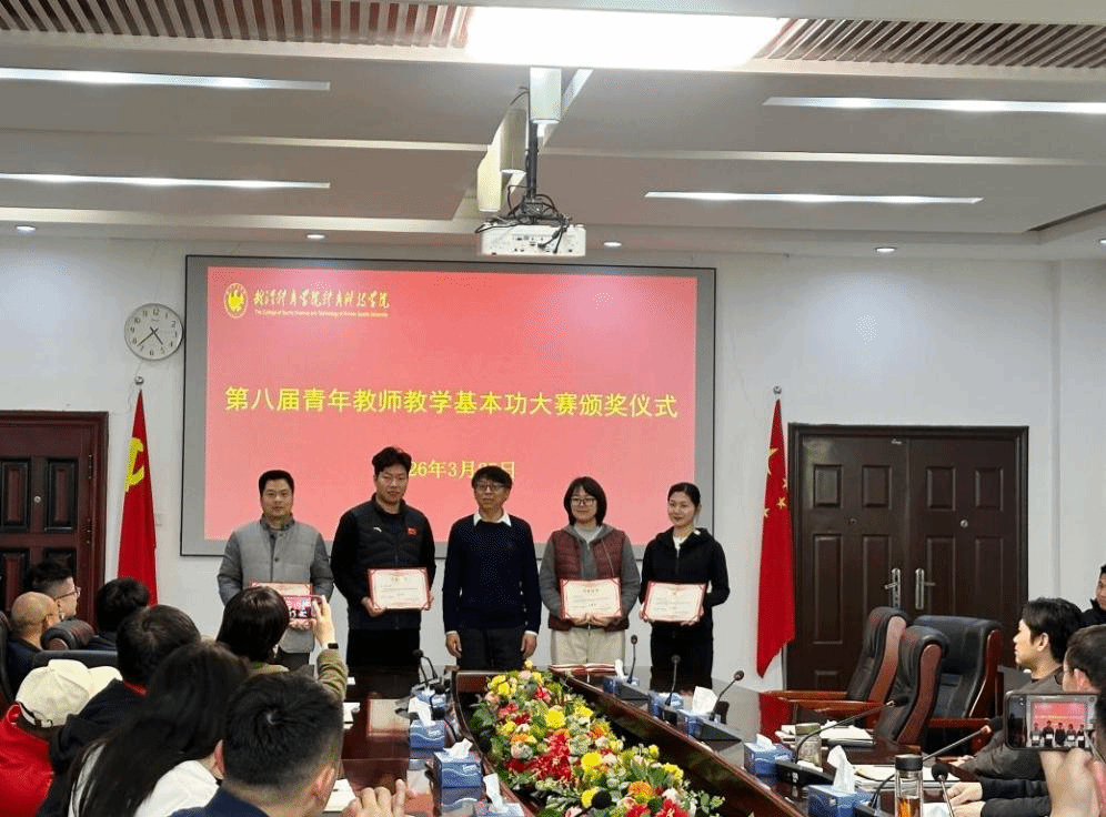 颁奖现场,王松院长为全体获奖教师逐一颁发荣誉证书,并致以热烈祝贺,对参赛教师在大赛中展现出过硬教学能力、严谨教学态度和鲜明教学特色给予充分肯定。他指出,青年教师是学院教育教学发展的生力军,本次大赛既是对学院青年教师教学基本功的一次全面检验,更是搭建了青年教师交流学习、切磋技艺的优质平台,为学院教学质量提升注入了新活力。他强调,各教学单位要高度重视获奖教师的示范引领作用,加大宣传力度,通过多形式、多渠道广泛宣传获奖教师的教学风采与育人经验;要以此次大赛为契机,以点带面,引导全院更多青年教师主动投身教学改革,深耕课堂教学,持续锤炼教学基本功、提升教学业务水平;要着力营造比学赶超、争创一流的浓厚教学氛围,把大赛成果转化为推动教学质量提升的实际成效,以高素质师资队伍建设支撑学院内涵发展。