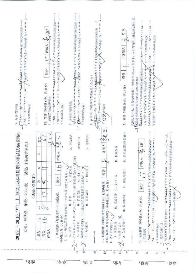 (三)如果在试卷上对评分进行了更改,更改人应在更改处签字。