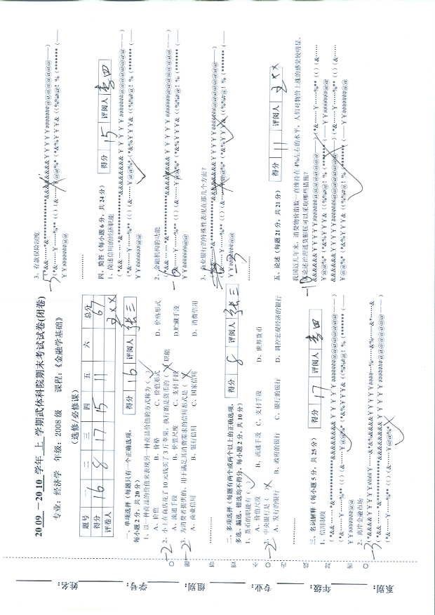 5.大题记得分,每道大题得分记在题号后得分空格处,其分数是大题总分减去大题中每小题失分之和,评阅人完整签名;